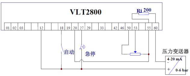 图二、VLT2800 变频器闭环过程控制典型接线图