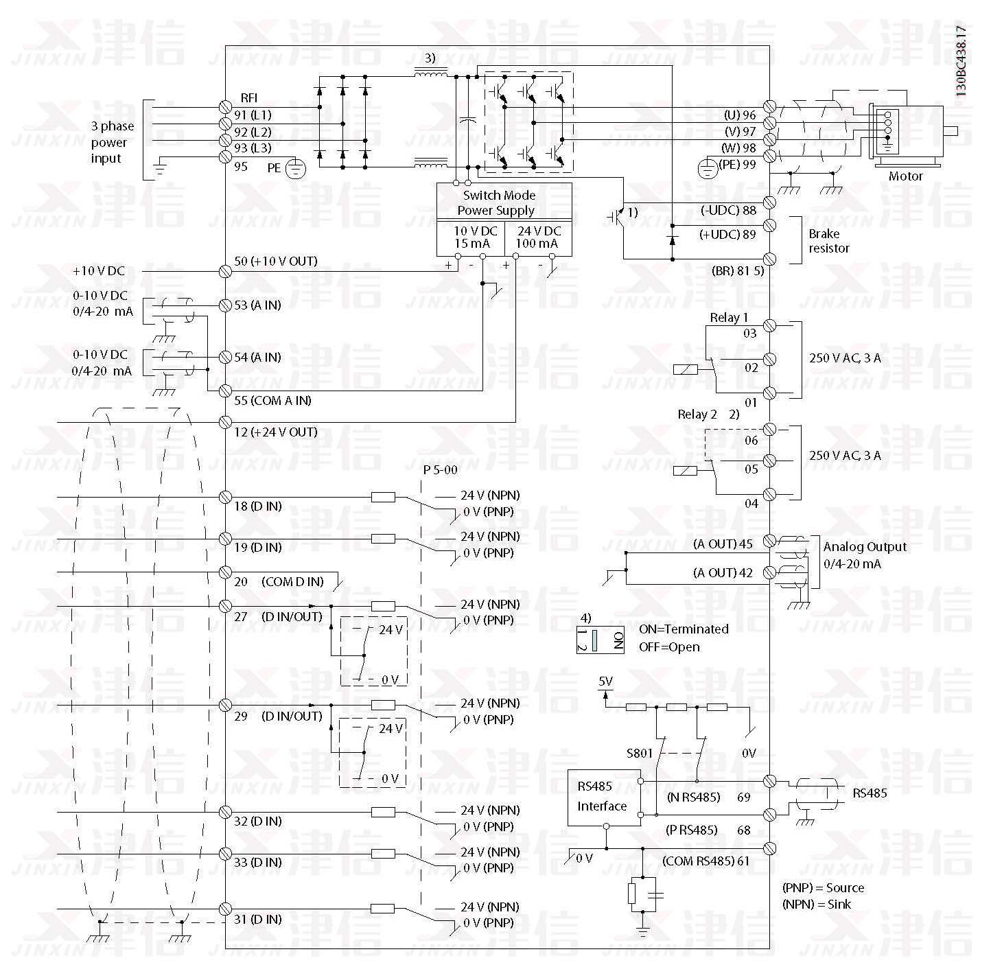 2) 端子 53 也可用作数字输入。