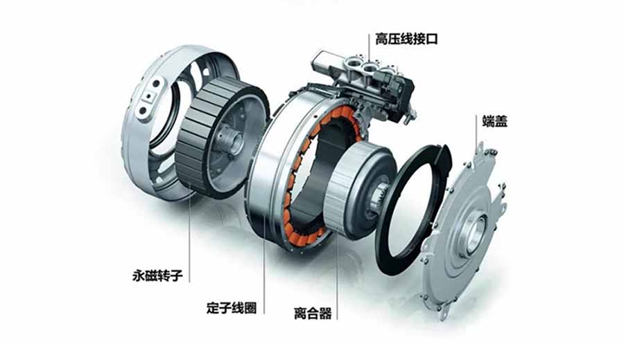 但是随着现代新型高磁性稀土永磁材料的快速发展,永磁同步电机在近几年开始逐渐登上舞台。和异步电机相比,永磁同步电机采用永磁体励磁,不存在励磁电流和转子损耗,因此能效较高,并且由于损耗发热低,同样机座号的电机可以承载更大的电流负荷,这意味着相同功率的永磁同步电机体积和重量都比异步电机要低,材料消耗更少。
