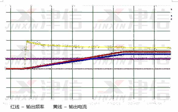 变频器和电机参数设置完成后,开机启动,下图是加速时的转速电流波型曲线,可以看出,电机加速及运行平稳,电流输出正常。