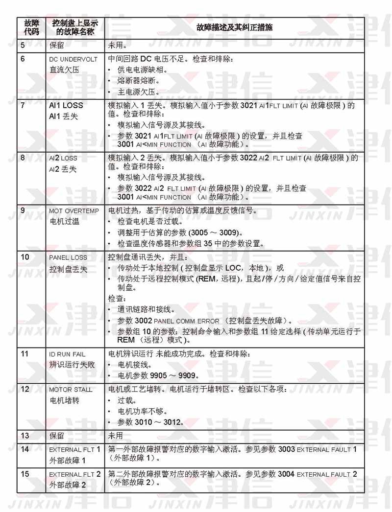 二、ABB ACS550 故障代码F0005,6,7,8,9,10,11,12,13,14,15