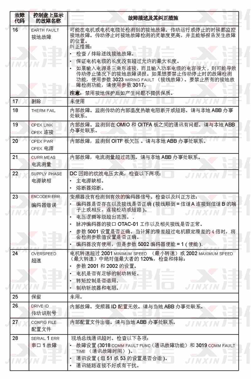 三、ABB ACS550 故障代码F0016,17,18,19,20,21,22,23,24,25,26,27,28
