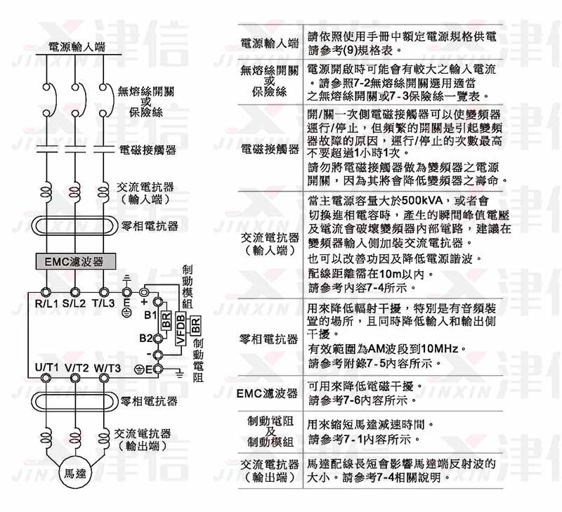 打开变频器上盖后,露出各接线端子排,检查各主回路电路及控制回路电路之端子是否标示清楚及接线时注意以下各项说明,干万不要接错线: