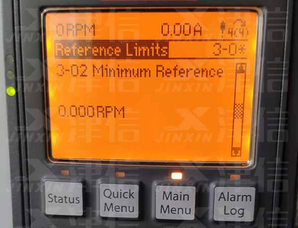使用上下键选择3-02,进行最小频率设置,此时的单位是RPM转速