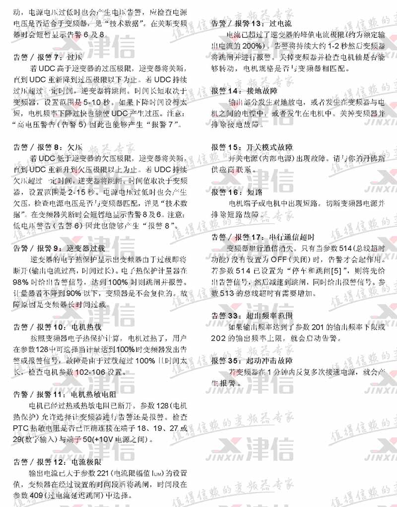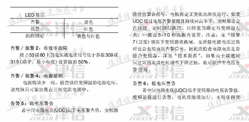 故障代码 故障描述 警告 报警 跳闸锁定