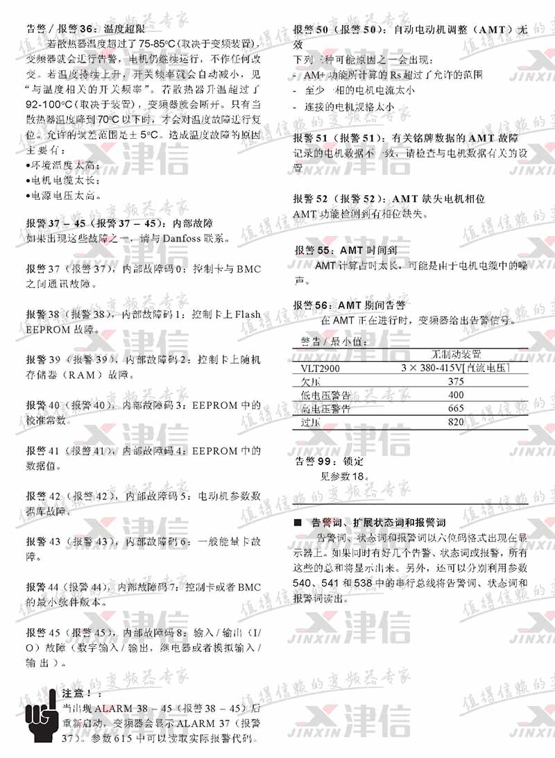 丹佛斯VLT 2900变频器故障代码和报警大全