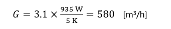 这个公式给出了对应海拔0的散热通风量,需要注意的是散热时主要考虑空气的质量流量而不是体积流量,因为质量流量决定了总冷却量。通常出风口和进风口的温差为5K(相当于5°C)。同时需要注意的是湿空气的热传递能力要比干燥空气差,另外,空气密度随着海拔和温度的增高而降低。通常情况下,以下的简化公式就可以用于计算柜体散热所需要的通风量: