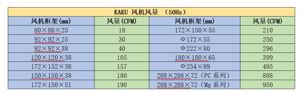 下表列出市场上比较常见的卡固(KAKU)风机的数据,作为羞羞漫画在线观看上面例子的风机选型参考。