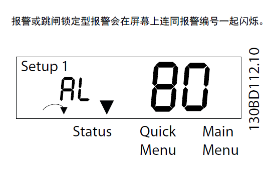 只有当变频器的供电电压缺失并且 14-10 主电源 故障 未设成 [0] 无功能 时,此警告/报警才有效。 |