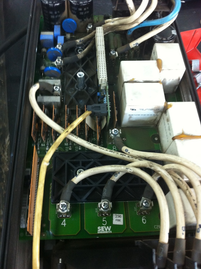 由于变频器使用的场合比较特殊,并且该机器配备同步控制功能,客户对于该机器保养很好,机器内部比较干净。因此该机器发生故障肯定是由于器件本身损坏导致。