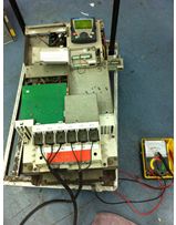第三,将变频器全部拆下,静态测试整流模块,逆变模块。同时进行触发整流和逆变模块,测试结果良好。电解电容拆下,检查电容外观,没有破损的痕迹,也没有电解液体外流现象。然后进行充放电测试,电解电容性能良好。