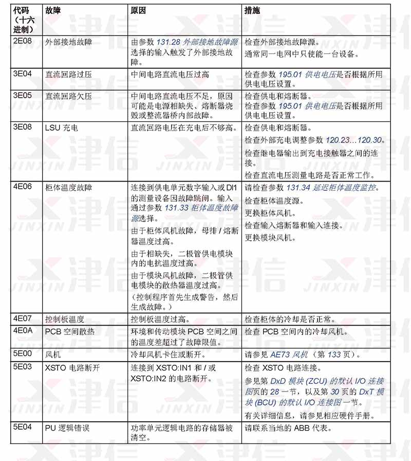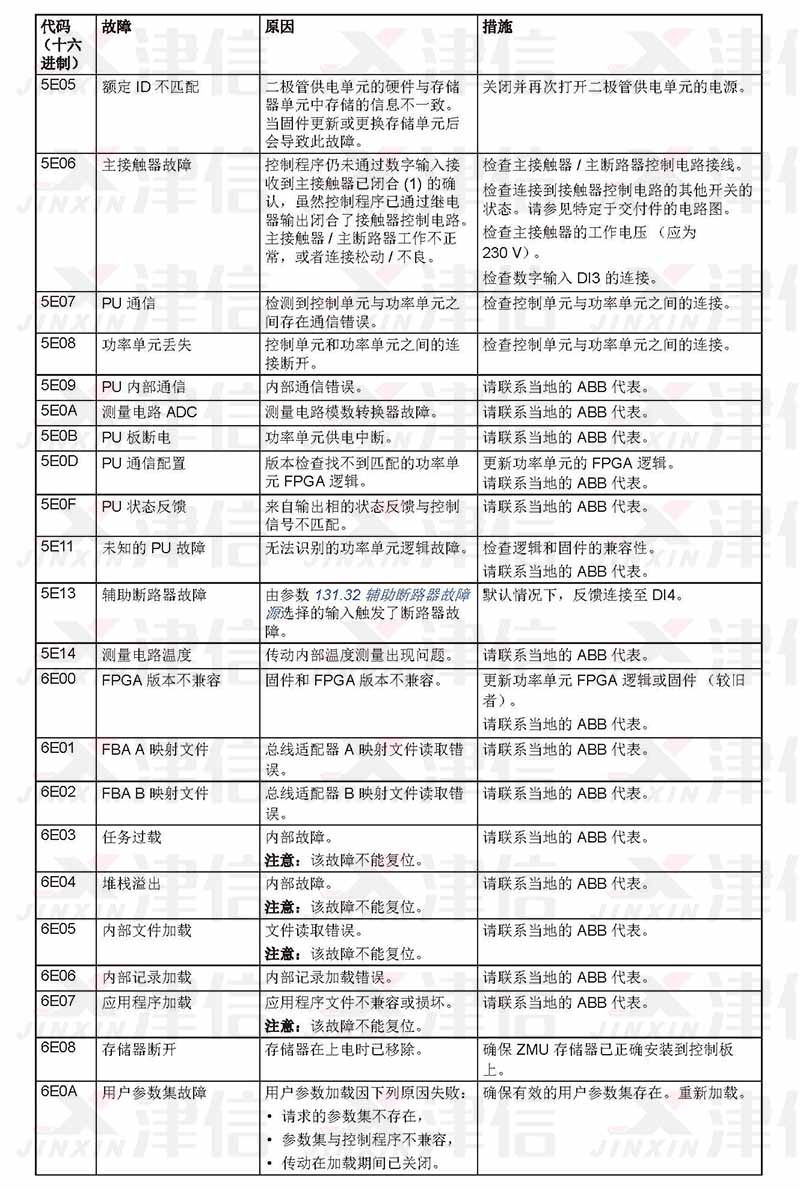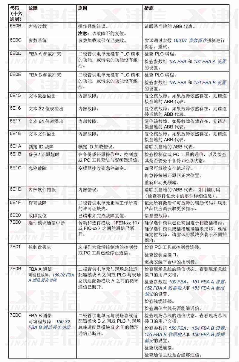 ABB ACS880在使用过程中,如果出现故障,可以在面板上查询故障代码,并根据相应故障代码分析故障原因和采取维修措施进行修复。常见故障代码如下: