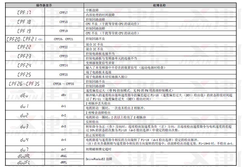 二、CPF17,CPF18,CPF19,CPF20,CPF21 CPF22,CPF23,CPF24,CPF25,CPF26 ~ CPF35,dEv,dv1,dv2,dv3,dv4,dv7 ,dWAL,dWFL故障代码