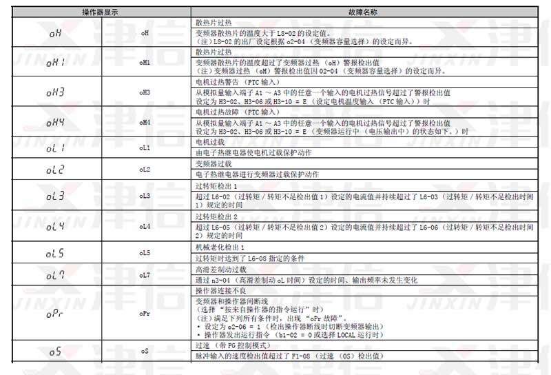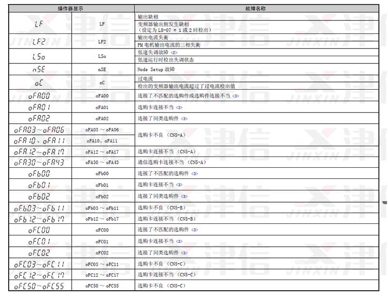 安川A1000变频器故障代码和维修对策