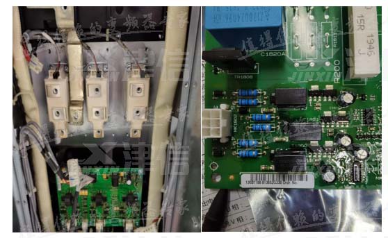 首先检查变频器的整流和逆变模块,在触发整流回路的可控硅时,发现L3相可控硅门极无法触发开,L1、L2相可控硅以及U、V、W相IGBT触发均为正常。