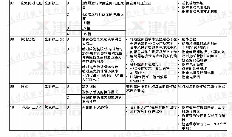 SEW变频器故障代码F07,F08,F09,F10,具体如下:
