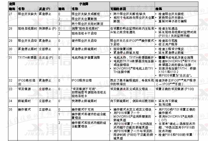 SEW变频器故障代码F27,F28,F29,F30,F31,F32,F33,F34,F35,具体如下: