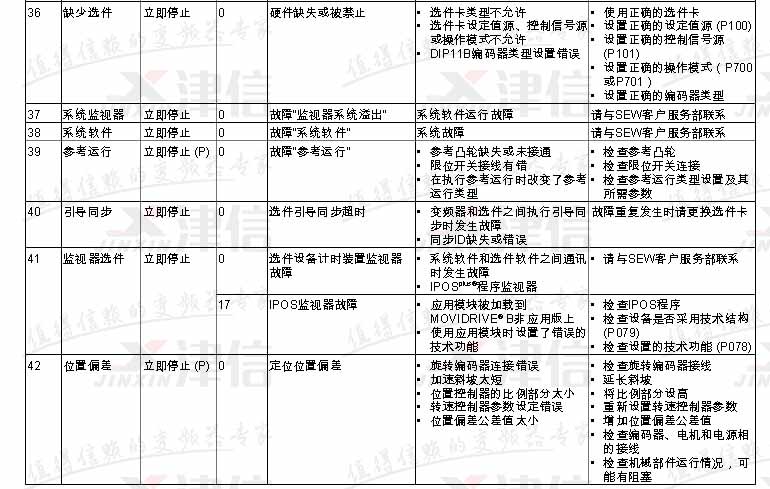 SEW变频器故障代码F36,F37,F38,F39,F40,F41,F42,具体如下: