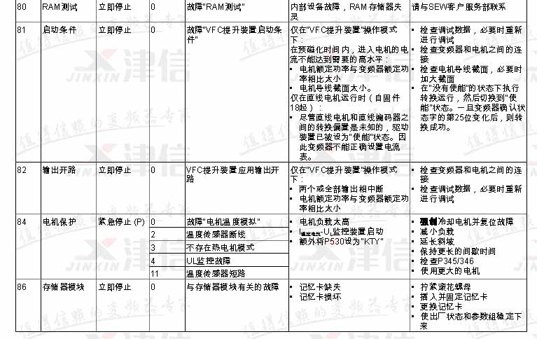 SEW变频器故障代码F80,F81,F82,F84,F86,具体如下: