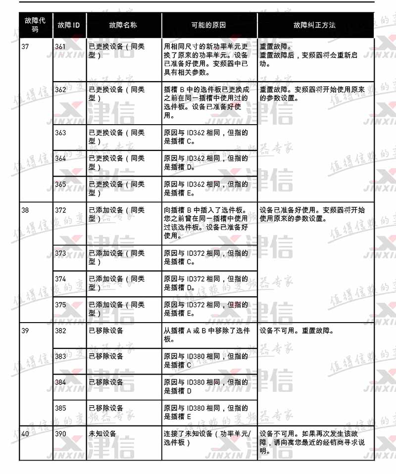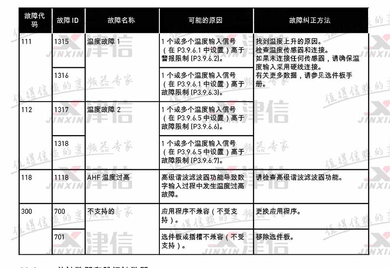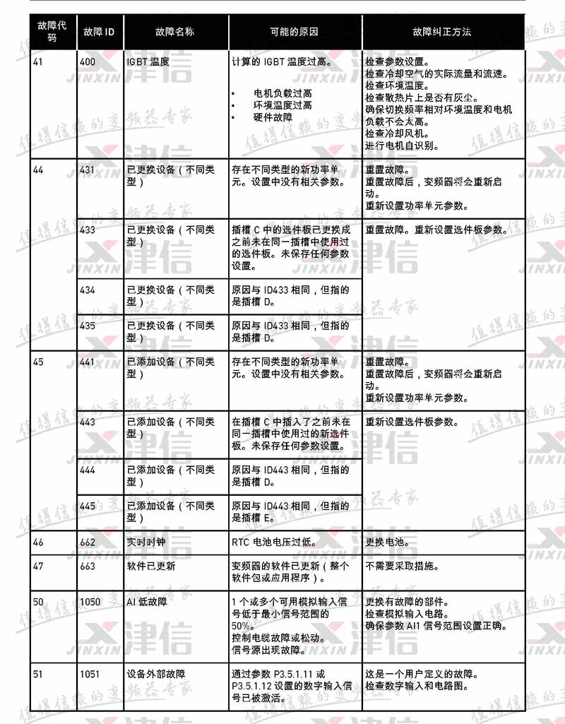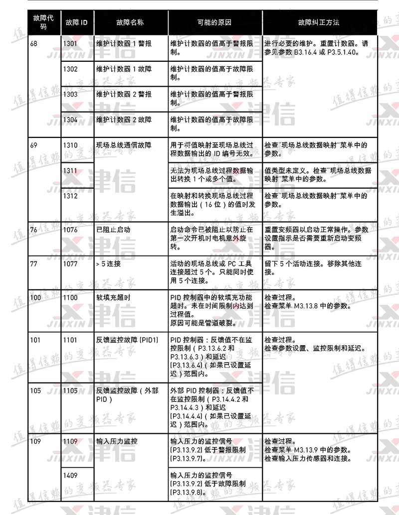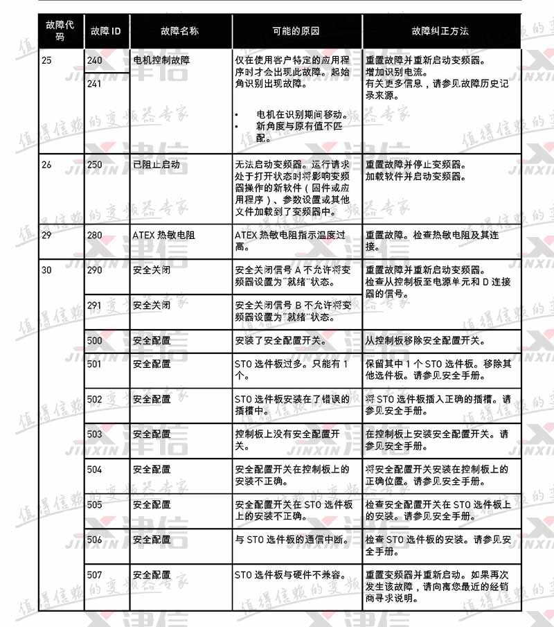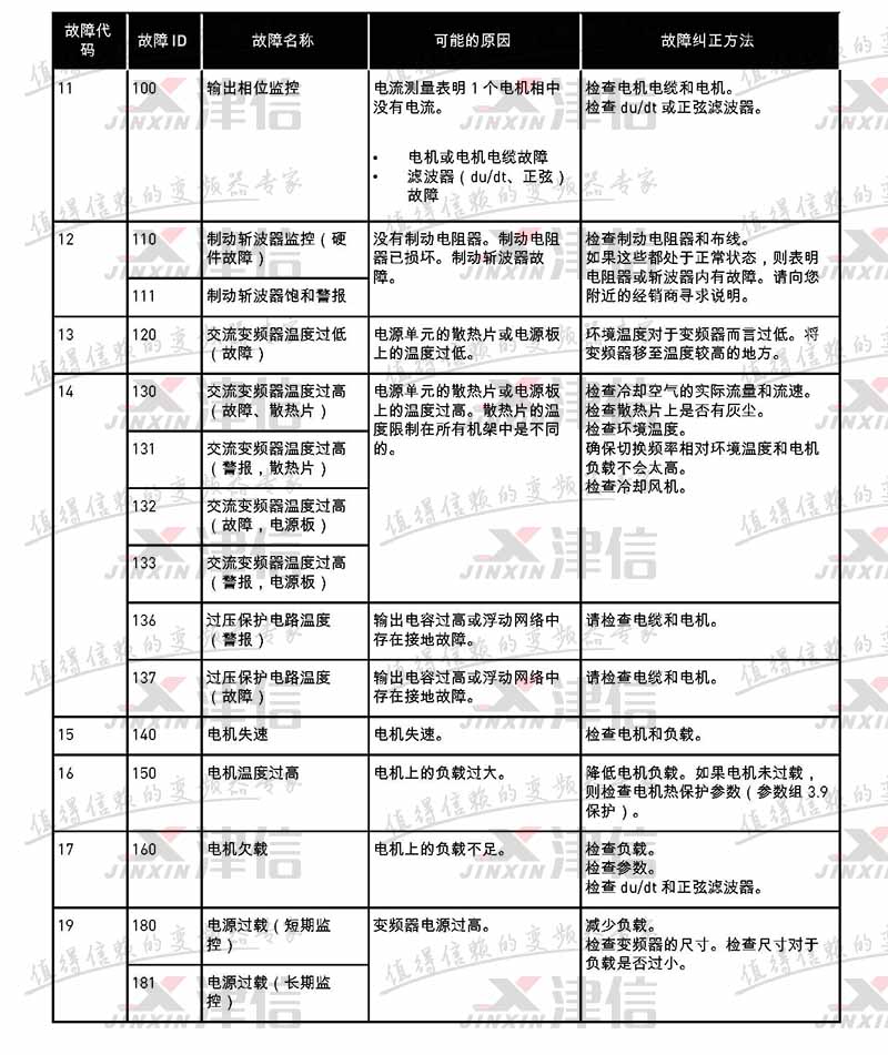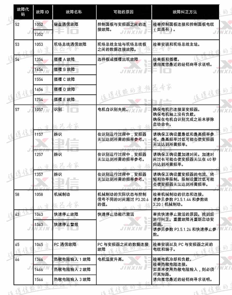 故障代码 故障 ID 故障名称 可能的原因 故障纠正方法