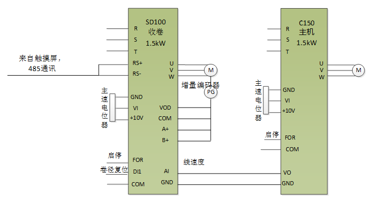 原收卷系统采用“变频器+电机+磁粉+张力控制器”的模式,设备使用一段时间后需要对磁粉进行维护,且磁粉故障率较高,增加了厂家和客户的故障点和维护成本;