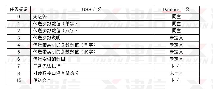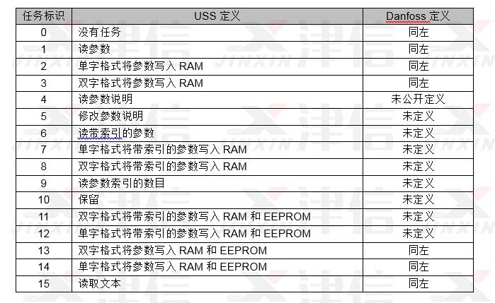 S7-200 USS4通讯子程序中用到的任务标识与Danfoss的定义相同。