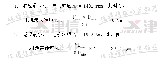 选择异步伺服电机的方法:以满足最大卷径时的转矩、转速数据为电机额定数据,选择异步伺服电机。